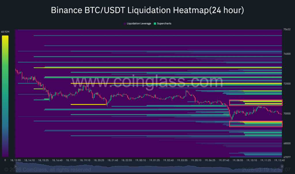From a price action perspective, the key level remains clear: a weekly close above $72K would signal strength and continuation, while failure to reclaim it keeps BTC in a broader range and vulnerable to further chop.