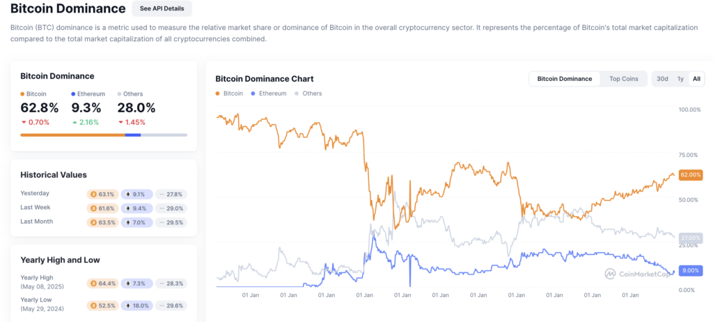 The total crypto market cap now stands at $3.5 trillion, up 6.38% from $3.29 trillion week-over-week, with Bitcoin dominance at 62.8%.