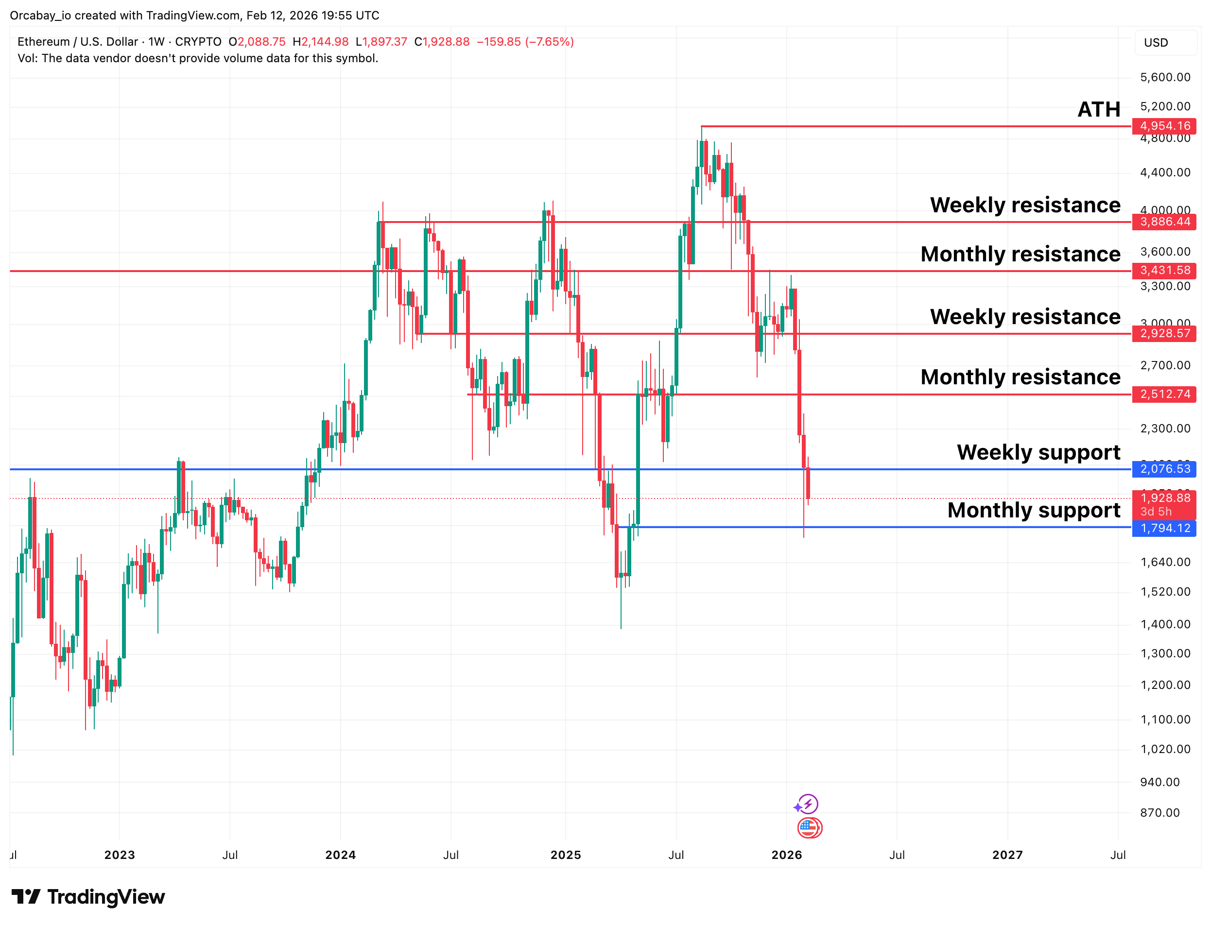 $ETH rejected the $2,000 weekly level, a key higher timeframe area. The reaction was clear, and structure on lower timeframes continues to print lower highs, keeping the short term trend tilted to the downside. There is no confirmed momentum shift yet.