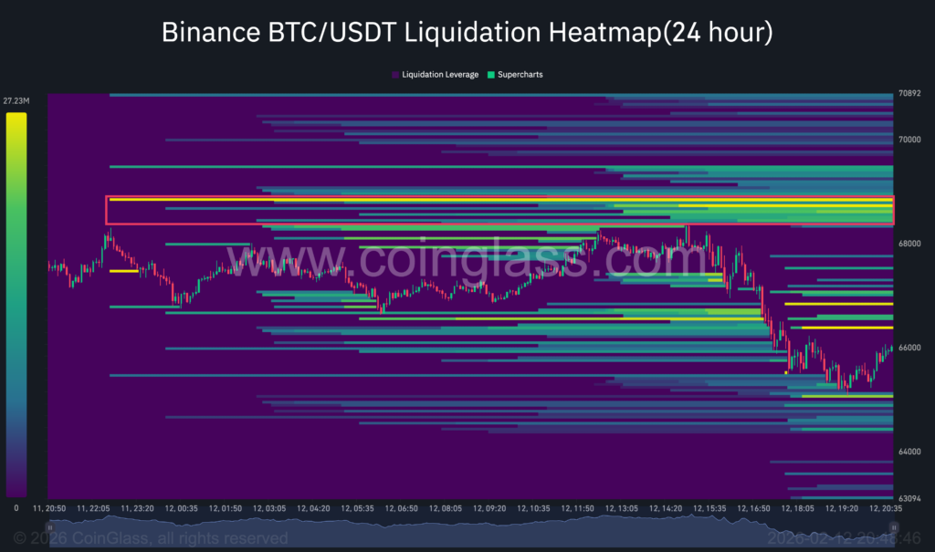 Bitcoin remains trapped in a defensive consolidation zone between ~$60k and $72k. The market structure is characterized by a “deleveraging regime,” evidenced by Perpetual Futures Open Interest (OI) sitting 51% below October peaks. This flushing of leveraged longs indicates that the current downside is driven by spot exhaustion rather than fresh short-side conviction.