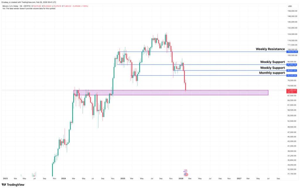$BTC has broken down sharply and is now trading around 2024 highs, with macro conditions and broader risk markets playing a decisive role. For now, the $72K–$68K range is the key zone to watch.
