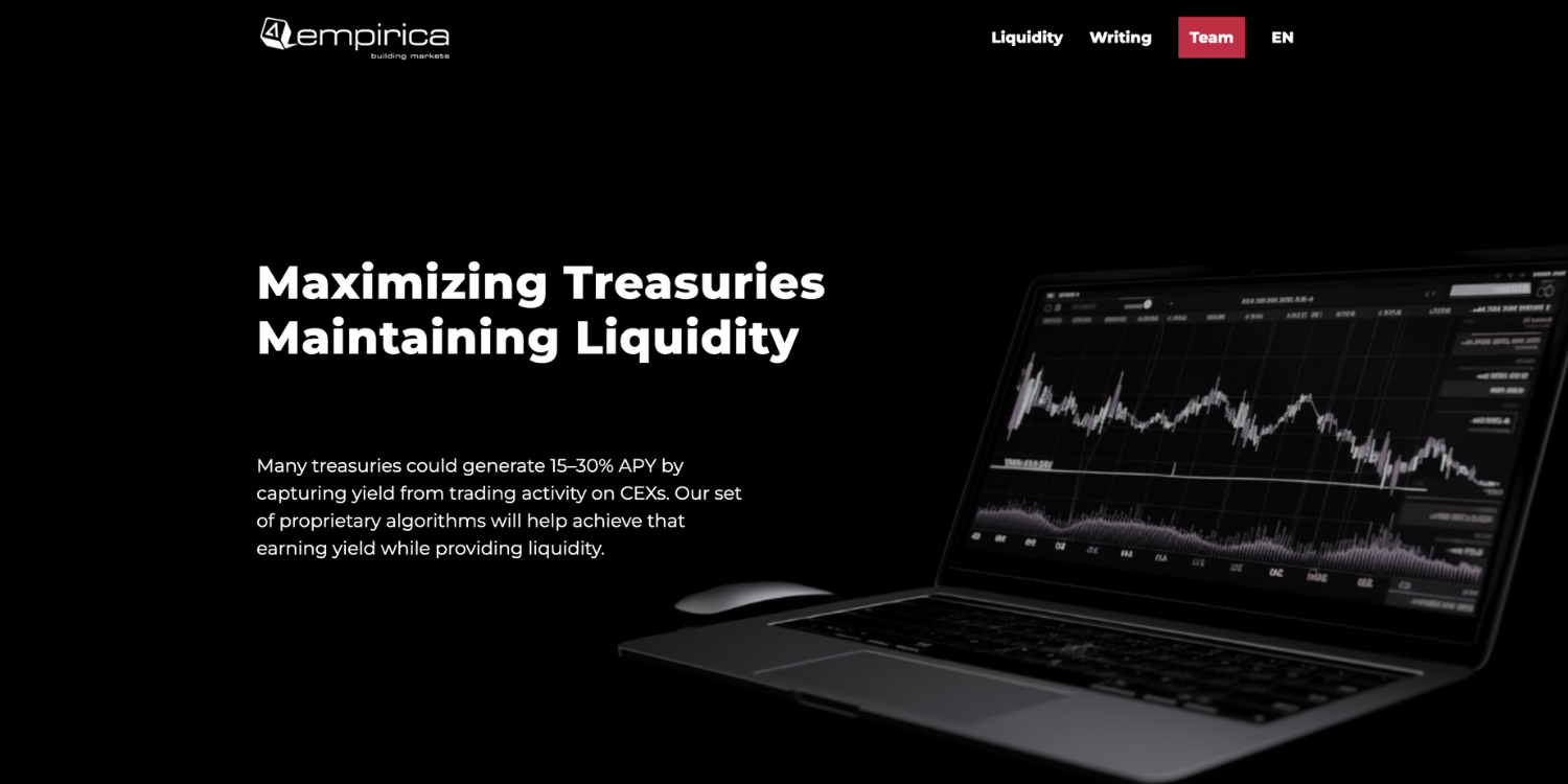 Empirica is a technology-driven market maker that delivers algorithmic trading tools and flexible liquidity solutions for crypto projects and token issuers. The firm uses quantitative research to stabilize markets and is recognized for designing adaptive strategies that minimize volatility for emerging assets and smaller exchanges.