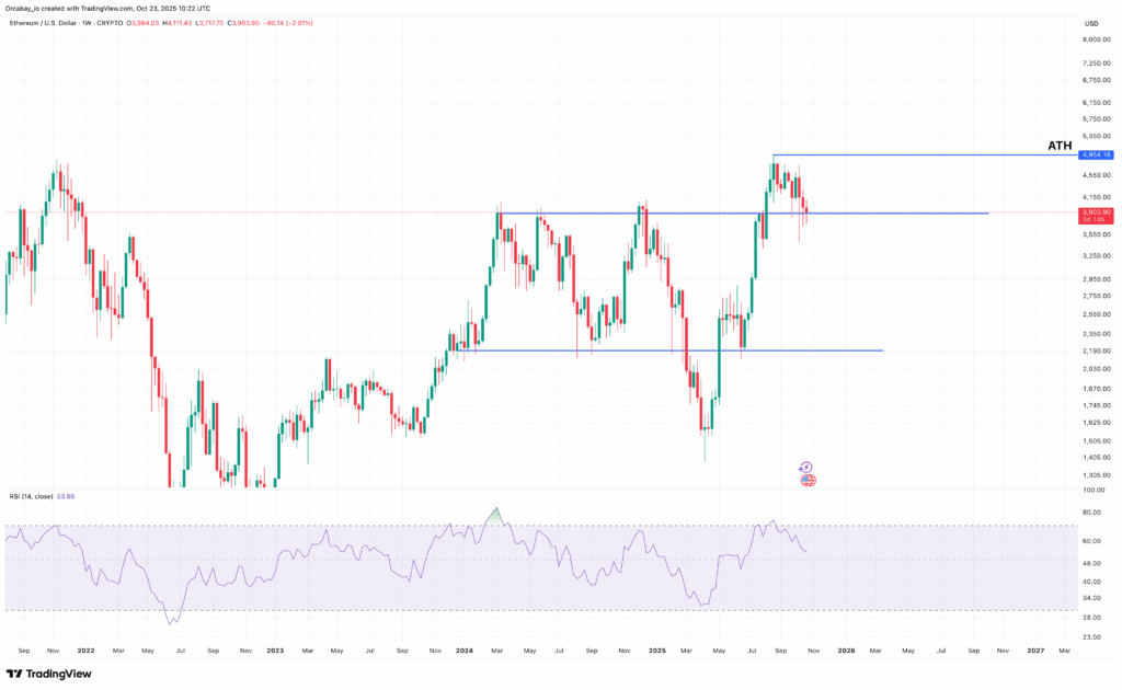 Realistically, if Bitcoin regains strength, the broader crypto market will follow due to the typical spillover effect. In that scenario, positioning here offers an attractive risk-to-reward setup, with a take-profit target near the previous ATH (~$5,000) and a stop-loss just below the prior wick lows.