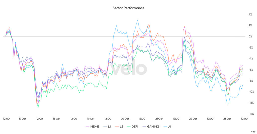 The setup into late October remains balanced — leverage has been flushed, volatility is contained, and macro conditions remain supportive. With funding rates near neutral, the market is now less exposed to another liquidation cascade. Bitcoin continues to serve as the structural anchor, supported by steady ETF inflows and tight exchange supply, while Ethereum and major L1/L2 ecosystems are showing early signs of relative strength.